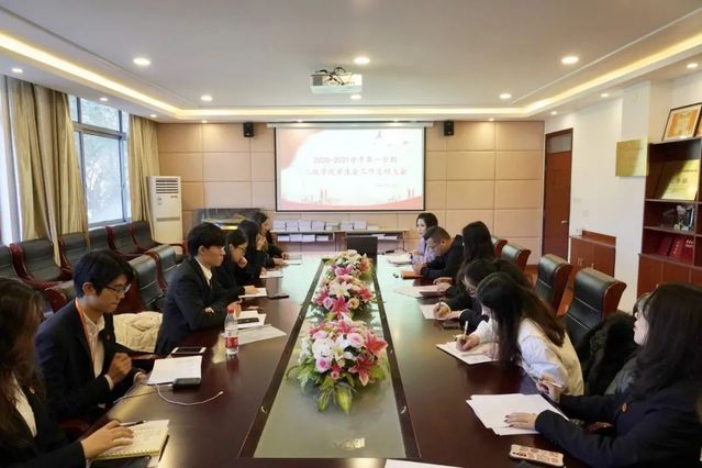 为贯彻落实团中央和全国学联对高校学生会组织深化改革的相关要求,加强我校学生会干部队伍建设,全面加强各二级学院学生会工作的交流融合,不断激发学生会组织更好地服务青年学生成长成才,校学生会于12月30日中午在月270召开二级学院学生会主席述职评议会,学保处副处长、校团委书记杨央,团委副书记王晓亮、沈捷出席本次考核工作。