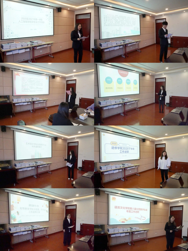 各学院学生会主席依次进行述职,既对具体工作进行了汇报又对品牌创新工作进行分享,内容丰富,重点突出,展现出工作的活力和创造力。各学院在汇报中将学生会目前发展现状、存在的不足进行剖析。本次述职既是在回顾中总结经验,又加强了相互的沟通交流,有利于各学生会工作水平和整体素质的提升,也对学院之间工作的取长补短搭建了平台。