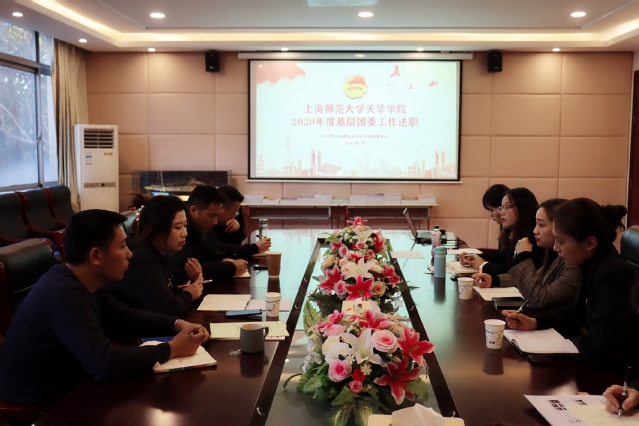 会前各分团委认真对照学校2020年工作重点和团市委《上海高校共青团2020年基层建设重点工作项目清单》,结合《上海师范大学天华学院共青团工作考核指标及评价标准》,重点围绕基层团委2020年度共青团工作在主题活动、支部建设、阵地建设等方面的开展情况,尤其是基础团务工作、团务信息化管理等内容,结合校园文化、社会实践等方面的特色工作开展情况,梳理分析了基层团建工作中存在的问题和下一步工作思路。,会上各分团委书记通过PPT依次进行述职,展现各二级学院团学工作风采的同时分享了对未来工作的所思所想。