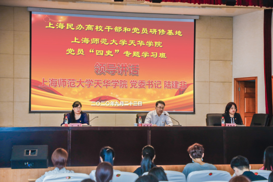 在上海市教卫党委的领导下,上海市民办高校党工委于2018年实施了“民办高校党建与思想政治工作创新专项计划”(简称“民创”项目),上海民办高校干部和党员研修基地、上海民办高校党建和思政工作研究中心两大项目均落户天华学院。2019年“民创”项目因疫情执行受阻,学校采取线上线下结合的方式开展工作。上海民办高校干部和党员研修基地组织了党员发展对象、党总支支部书记网络学习班,围绕“四史”组织网上云培训讲座四次,其中首场报告吸引了10800人次,共同参加线上“四史”学习教育;上海民办高校党建和思政工作研究中心,组织了理论研究、决策咨询和典型案例3类共78项课题的研究,为民办高校培养了一批党建思政研究骨干。