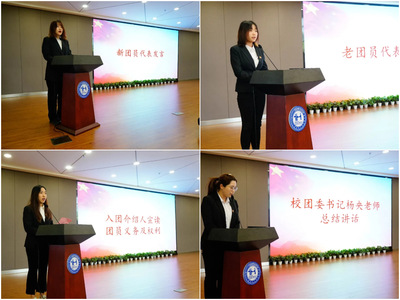 入团介绍人代表晋戚瑜向各位新团员宣读《团章》中有关团员的义务和权利的条款;新团员代表王曼贞在发言中表示新团员们将坚决拥护中国共产党纲领,坚定不移地贯彻党的基本路线,努力成为有理想,有文化,有道德,有纪律的社会主义接班人;老团员代表张磊对新团员表示祝贺的同时也分享了做一名合格共青团员的经验。