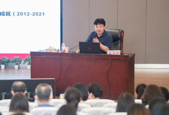 会议伊始,张志丹由百年党史的四大成就引出四大宣誓,结合党的百年变迁过程,指出党的百年辉煌的意识形态密码是在党的坚强领导下坚持与时俱进、守正出新地推进意识形态建设,围绕中心、服务大局、把握方向,坚持用党的创新理论来武装全党、教育人民坚定理想信念以此服务和推进党的事业发展。