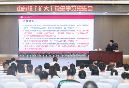 9月3日上午,学校党委中心组(扩大)党史学习报告会暨马克思主义与文化研究系列讲座于晖华楼报告厅举办。会议邀请上海师范大学马克思主义学院院长、中央马克思主义理论研究和建设工程专家、国家社会科学基金重大项目首席专家张志丹作“中国共产党百年意识形态建设之道”专题讲座。会议由党委书记陆建非主持。