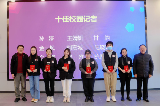 校大学生记者团团长孙婷作为十佳校园记者代表分享了她在记者团的成长经历,并针对记者团与官微的运行进行简要说明,讲述了2021年记者团在学校栏目上的创新以及视频号从零到一的突破。她指出,十佳记者是校园记者的标杆,一定要起到引领与带头作用,助力校园宣传工作。