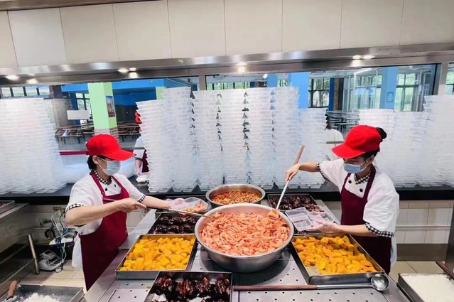 学校生活部的餐饮组,在开学初期就开展了新学期餐饮服务工作部署会议,增强学校餐饮行业的安全意识,规范食品安全制度,保证同学们的“味蕾体验”及饮食安全。由于疫情原因,学校提出不堂食的要求开学出的这个不堂食,生活部、文明督察部、以及民兵连,每日都在食堂内外维护秩序,体现了“我为群众办实事”的理念。