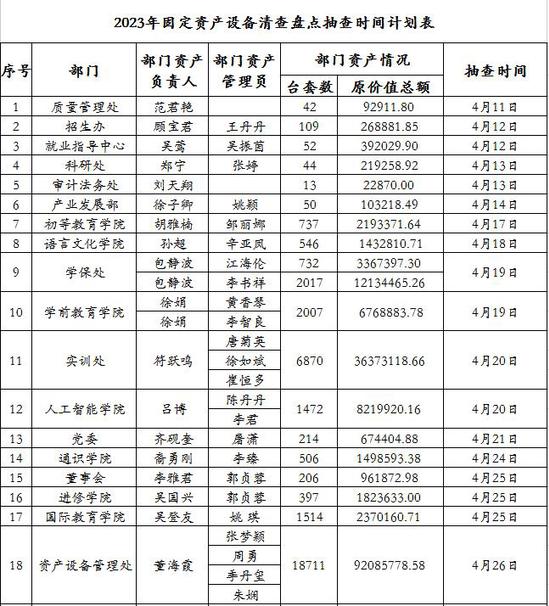 2023年固定资产设备清查盘点抽查时间计划表