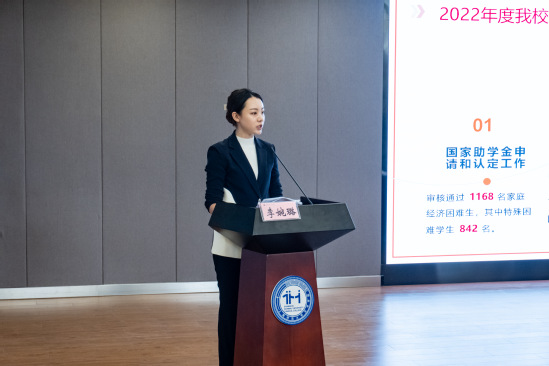(校资助中心主任李婉璐作2022年度学生资助工作汇报)