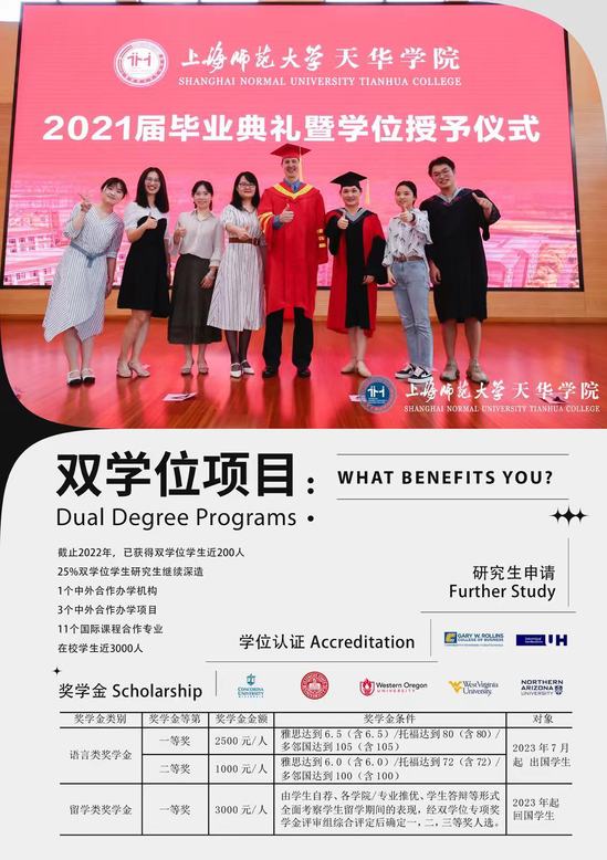 我校合作办学双学位项目为同学们提供更多沉浸式学习体验,使同学们获得丰富教育资源的同时,提高综合素养,为毕业就业助力。本学期起,学校特设合作办学项目专项奖学金,出国当年,学生可凭借语言成绩申请语言类奖学金,回国后,根据海外留学表现申请留学类奖学金。活动现场,2021-2022年双学位学生通过Colourful Campus Life)色彩斑斓的校园生活), Enjoy the Youth and Make Everyday Count(丰富多彩的青春历程), Hit the Road and Explore the World(探索,从踏出第一步开始)三个主题分享留学的美好瞬间。