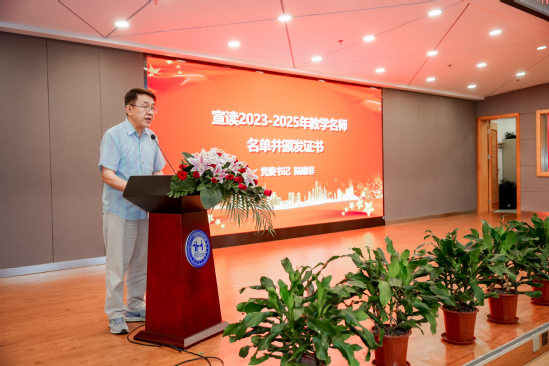 会上,党委书记陆建非宣读2023-2025年度教学名师名单,并给4位一级教学名师、9位二级教学名师、29位三级教学名师和52预备级教学名师代表颁证;校长叶才福宣读2023年高级和中级专业技术职务聘任名单,给3名教授,21名副教授,31名讲师代表发放聘书;总校监郭伟奇宣读第三批“活力课堂”星级教师名单,并给17位“活力课堂”星级教师授牌。