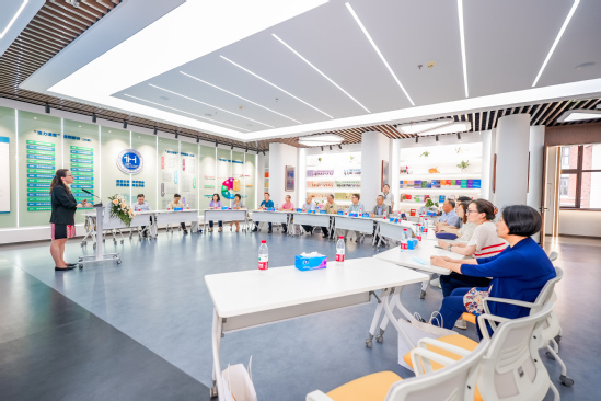 会前,全体校务委员会成员参观了新落成的天华学院“活力课堂”成果展示馆。执行董事长石伟平亲自为展示馆揭幕,副校长龚春蕾简要介绍建设思路。展示馆共800平方米,包括了研讨室、多功能厅、观摩教室和展示走廊4个区域,记录了“活力课堂”在天华发展过程中的里程碑事件和取得的一些经验成果,展示了学校教师在市级教学比赛中获得的奖项和天华学子在重要学科竞赛中取得的荣誉以及学校分三个批次评选产生的68名“活力课堂”星级教师照片,是一个高规格、现代化、开放型的教学研讨、示范、学习和观摩的公共空间。展示馆将于下学期9月正式投入使用,将成为天华活力课堂、智慧教学的一个新高地、新地标!