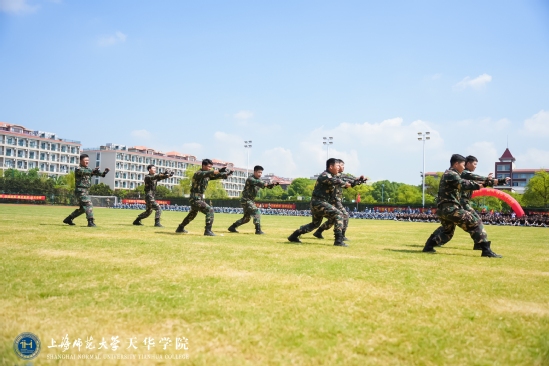 检阅式后,各军训表演方队依次进行了精彩的鼓乐、舞龙、警用应急棍、匕首操、军体拳、功夫扇、教官战术综合演练等训练科目成果汇报。整齐有序的动作、气宇轩昂的口号,充分展示了良好的精神风貌和本次军训的丰硕成果,赢得热烈掌声。