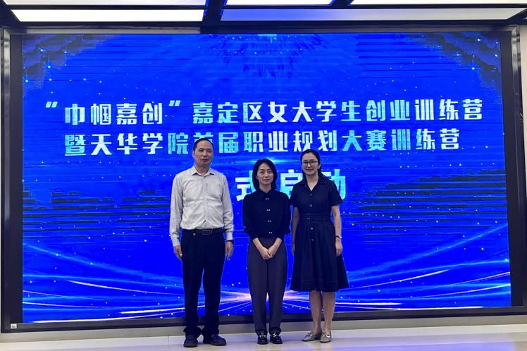 李雯副主席、韩英主任、朱国权副校长共同为2023年嘉定区女大学生创业训练营揭开大幕。本次训练营旨在为有创业想法的女大学生提供一系列的培训指导,提供专业的创业知识、实践经验和资源支持,助力她们走上创业道路、实现创业梦想。
