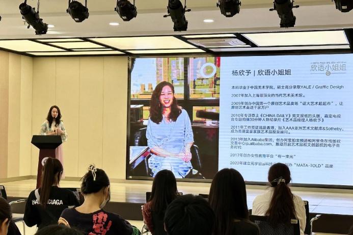 活动第二阶段,第六届嘉定区女性创新创业大赛获奖选手、上海团市委“青年文化名人”、视频号10w+金V博主杨欣予为学生带来“互联网时代下的创始人IP打造”的主题讲座分享。
