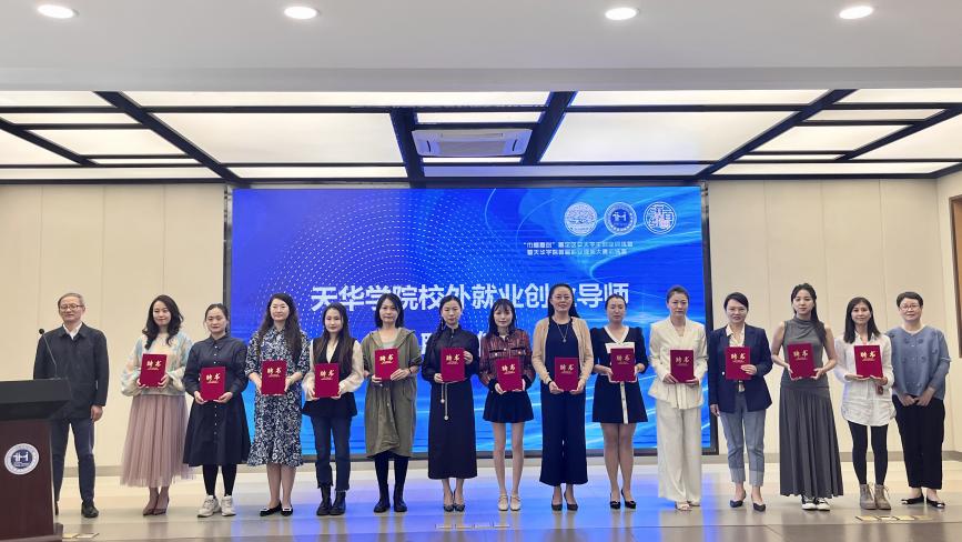 本次活动聘任了13位女企业家为校外就业创业导师,郭伟钧主任和吴莺副主任为校外导师颁发聘书。
