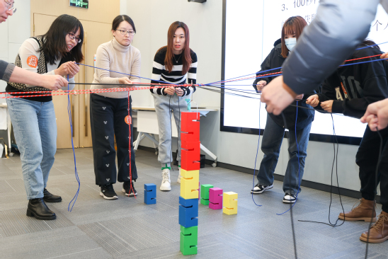 活动伊始,工会常务副主席曹卫向在座教师表达了问候,同时也对前来协助展开活动的嘉定工业区社会组织服务中心表达了真挚的感谢。为了快速活跃氛围,现场举办了“合力搭建”“桌面冰球”两项暖场小游戏,各位老师积极参与其中,现场氛围欢乐祥和,获奖老师也被赠与冬日毛毯奖励,喻示冬日中的温暖。