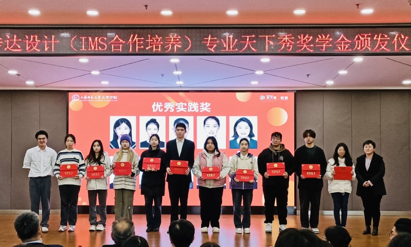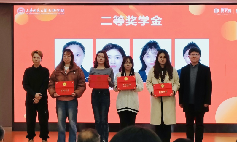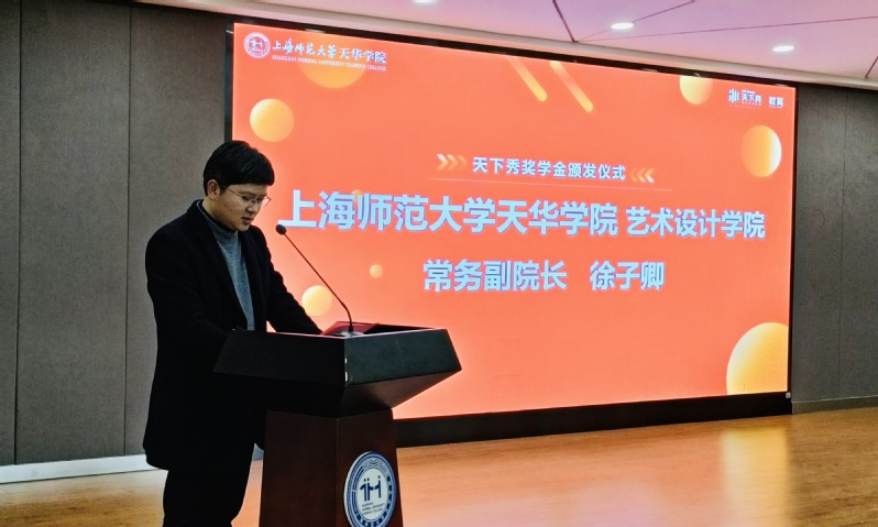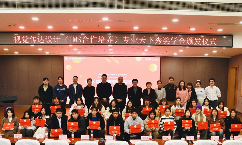 12月28日下午,由我院与天下秀数字科技集团(以下简称“天下秀教育”)共同举办的“上海师范大学天华学院艺术设计学院视觉传达设计(IMS合作培养)专业2022-2023学年奖学金颁奖典礼”在我校晖华楼报告厅举行。