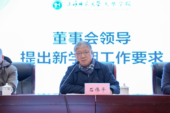 会议最后,执行董事长石伟平具体传达了董事长邹荣祥在校务委员会全体会议上的讲话精神,并代表董事会作新学期工作纲要指导。石伟平指出,新的学期,发展的机遇和面临的挑战并存,希望大家聚焦完成转设、合格评估与取得硕士点三大战略目标,在就业工作、硕士点培育、数字化赋能等方面多下功夫,认真落实新学期工作部署,始终保持忧患意识,发扬“奋力一跳”精神,铆足干劲,奋发有为,为实现三大战略目标冲刺迈进!