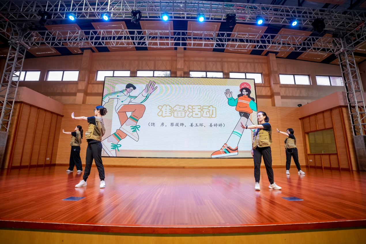 通识学院教师姜玉环代表全体裁判员庄严宣誓,在本次比赛过程中将严格遵守比赛规则和裁判员纪律,秉承“准确、公平、公正、公开”的原则,尊重选手,文明裁判,并预祝各位参赛选手取得优异成绩。在正式比赛之前,通识学院体育教学部饶彦、蔡筱烨、姜婷婷和姜玉环老师带领全体参赛教职工进行了赛前热身。