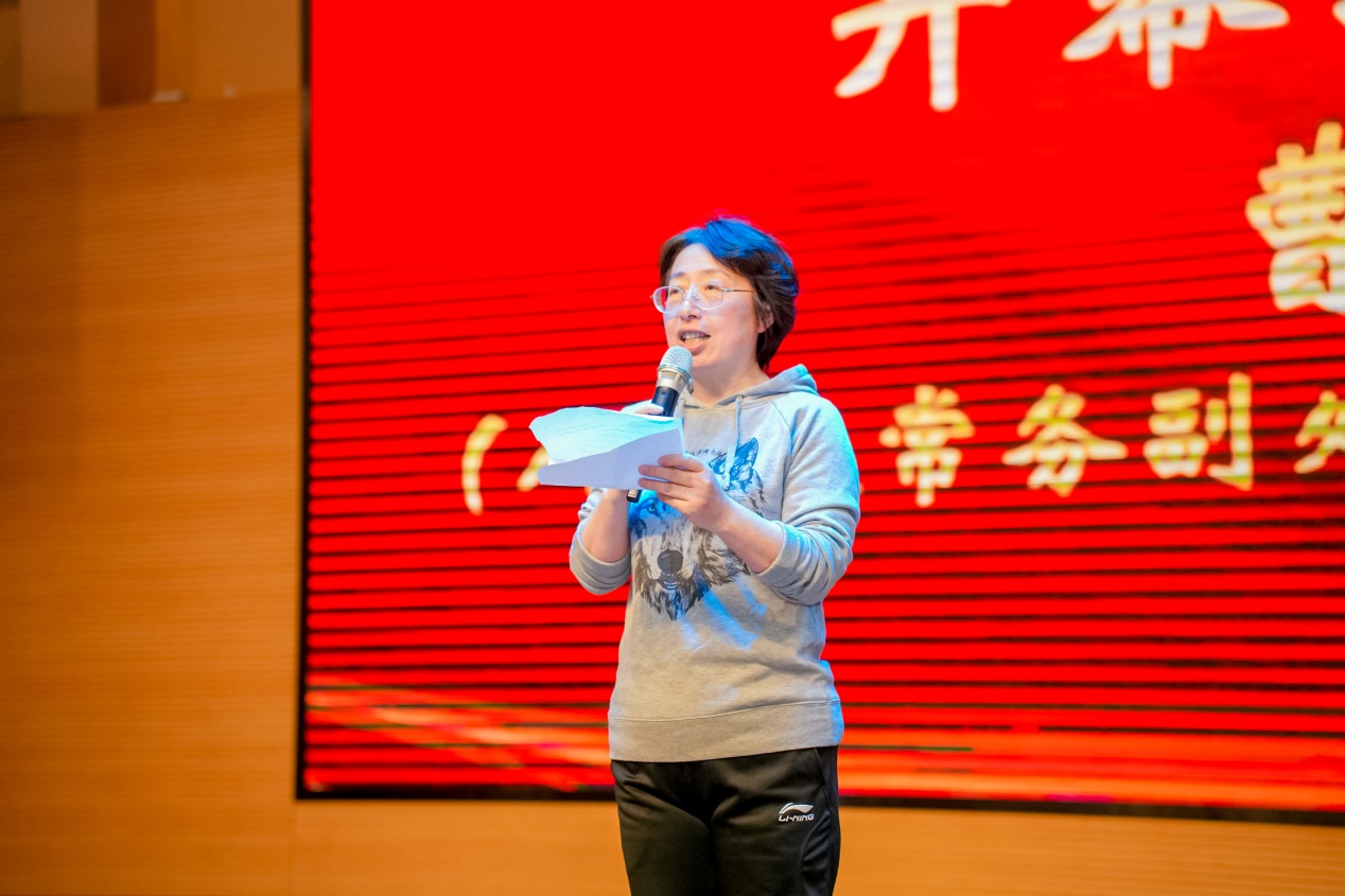学校人事处常务副处长、工会常务副主席曹卫为开幕式致辞,她对组织本次运动会的工作人员、全体运动员和裁判员们表示衷心的感谢和诚挚的问候。希望大家能够遵循“安全第一、比赛第二”的原则,展现出我校教职员工的良好风范。