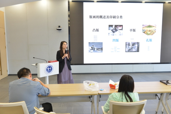 首先,郭梦迪老师做分享,郭梦迪老师主要分享了版画的基本概述与印刷分类,美柔汀的历史发展,制作方法以及相关展览与作品。通过这些内容的讲解,使我们更为清晰的了解了版画艺术的整体框架,铜版画美柔汀的起源,历史价值以及创作发展。