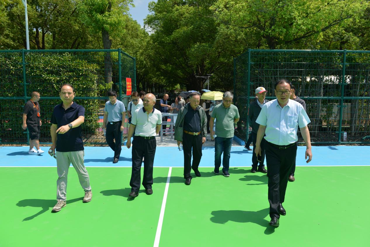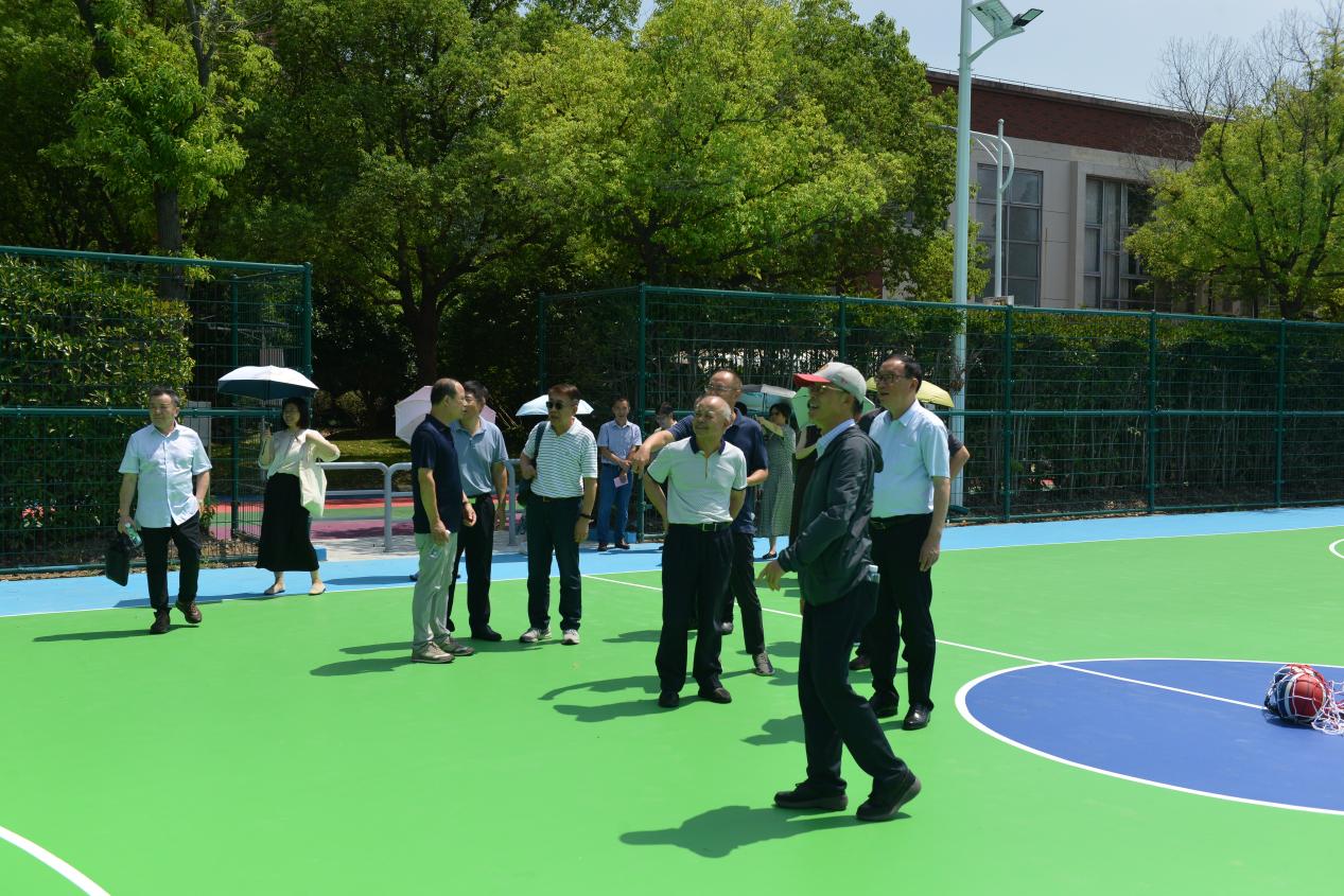 (校务委员会领导考察新建篮球场)