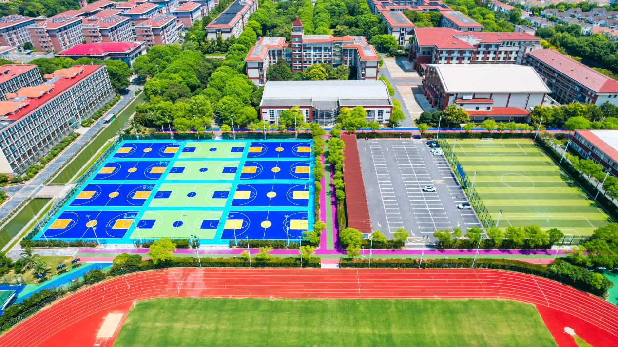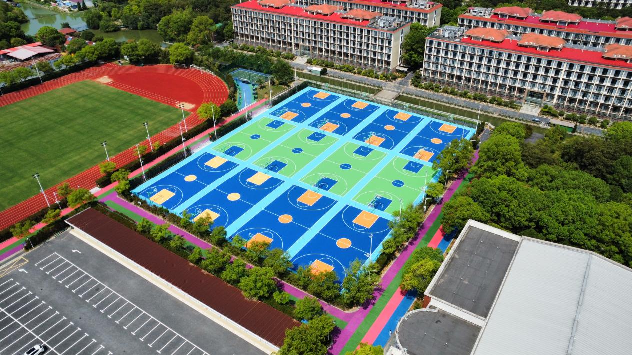 根据学校安排,今年3月份正式启动篮球场建设项目,经考察调研、师生座谈、深化设计、公开招标等流程,7月5日正式开工。施工期间正值暑假持续高温天气,王友根副校长带领项目组成员“战高温、斗酷暑”,把前沿指挥部设在体育馆形体房,每天坚持现场检查巡视,每周五坚持召开工程例会,抓实质量、把控进度、盯牢安全,精心协调解决施工过程中遇到的各类问题,经过为期50天施工建设,8月26日竣工交付。新建篮球场为12片国标篮球场,总面积约为6624平方米,为9层硅PU系统结构,保证了运动的舒适性及安全性,是目前室外篮球场地面铺设首选工艺,其实用性、美观度等综合性能,已达到目前高校篮球场较高水准。围绕大操场、篮球场和小足球场,完成了运动场配套彩虹路建设,整体呈“工”字型排列,面积为5739平米。
