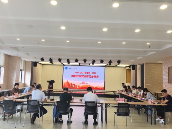 2024年9月27日,我校于图书馆报告厅召开2024-2025学年第一学期期初校园安全形势分析会,学校副总监事长曹云林、副校长徐子卿、学保处各副处长、各二级学院党总支正副书记参加会议。会议由学保处副处长刘洪伟主持。