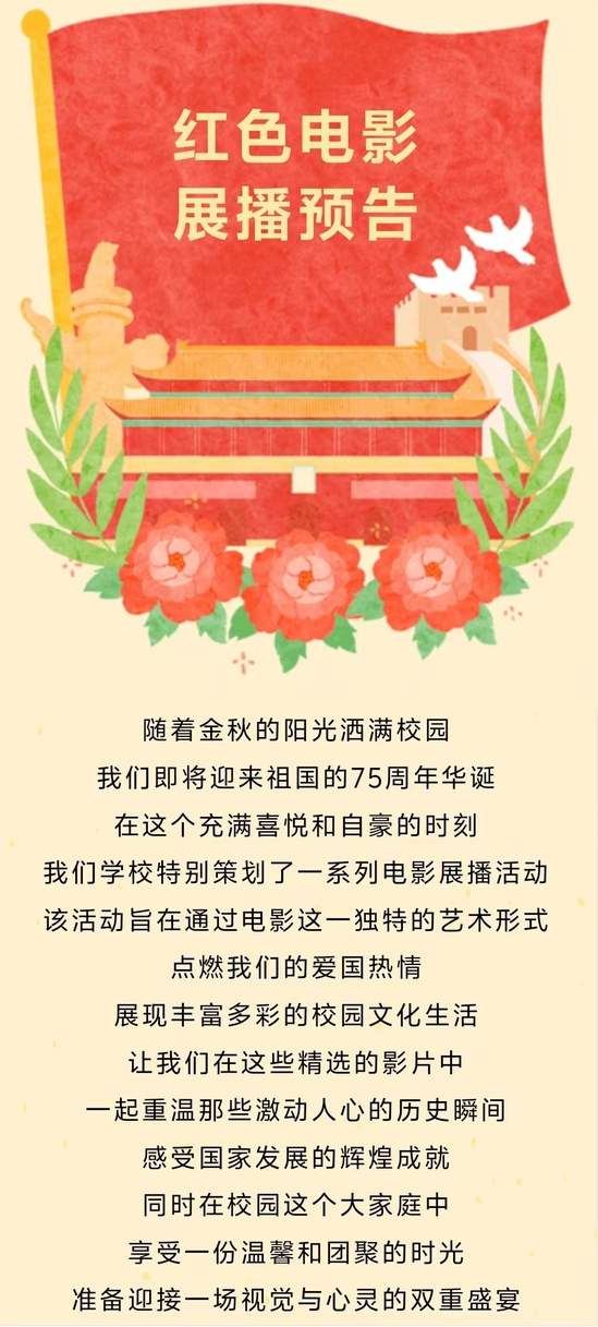 此次国庆假期,为让955名留校学生度过一个有意义的假期,各二级学院合理安排组织了7场红色主题观影活动。通过观看《建国大业》、《红海行动》等经典红色影片,让学生们重温革命历史,感受革命先烈的英勇事迹和伟大精神。
