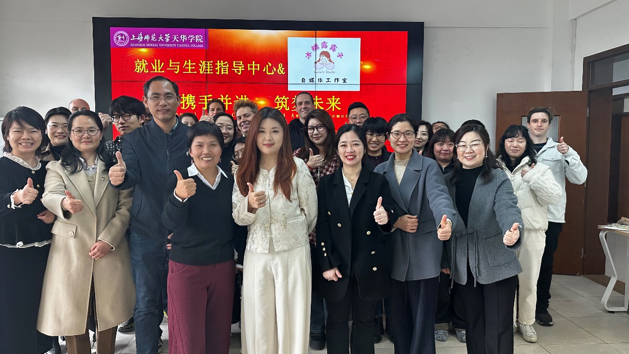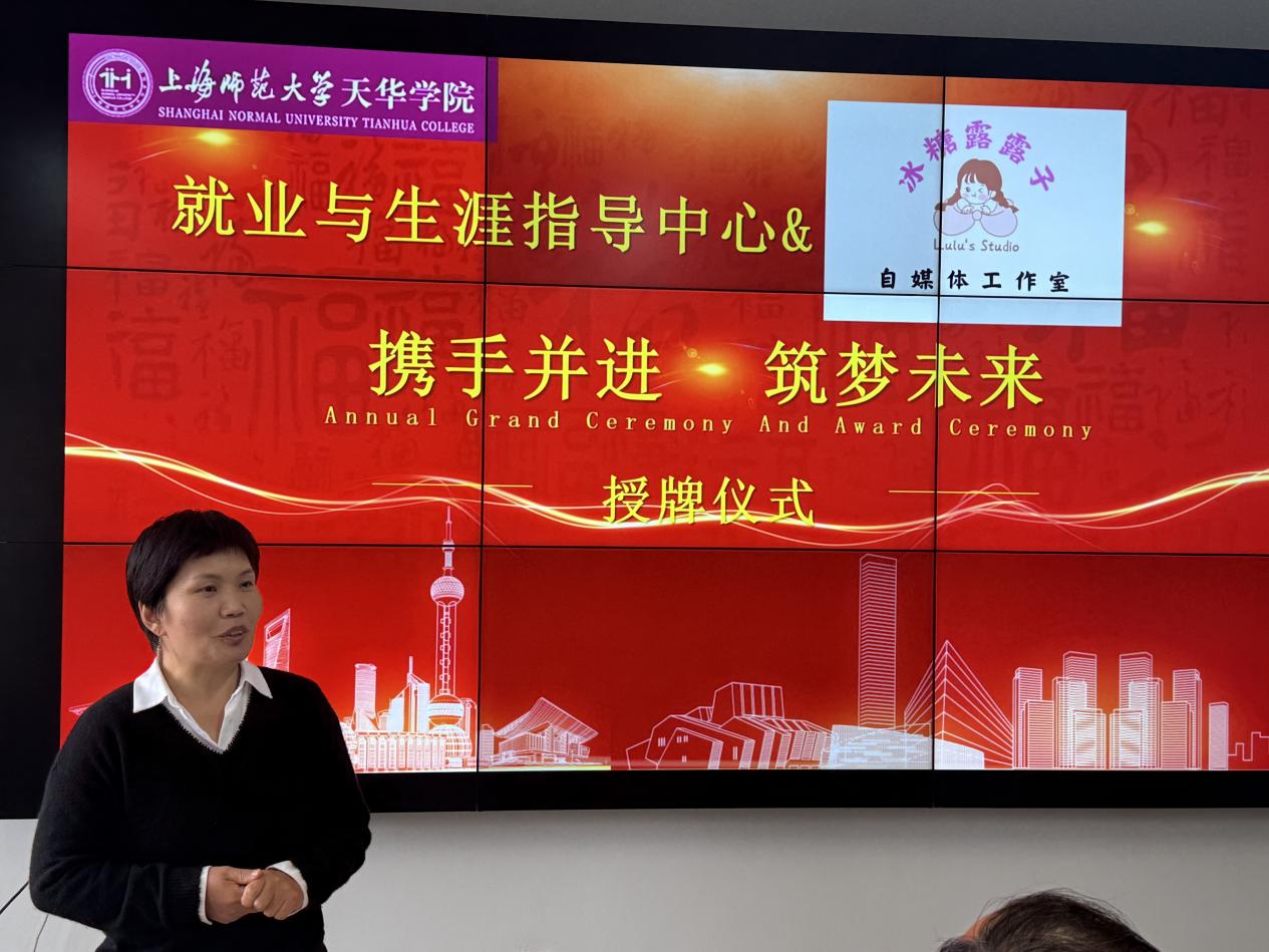 授牌仪式以轻松愉悦的HAPPY HOUR形式展开,现场气氛热烈而庄重。天华学院校长助理、就业与生涯指导中心主任胡珍博士出席活动并致辞。她对此次校企合作寄予厚望,强调学院将全力支持工作室的运营与发展,为学生提供全方位的实践指导与资源支持,助力学生在自媒体领域崭露头角,实现职业梦想。