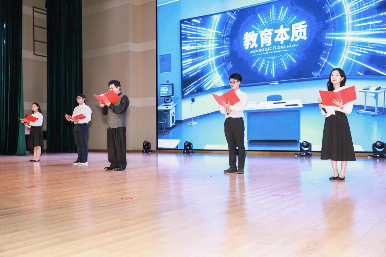 青衿学子志,书声伴韶华: 开篇话剧《梦启新章》以优秀学生为原型,讲述了非传统“学霸”苗嘉凌在老师慧眼识才与暖心鼓励下,点燃梦想、勇敢追梦的故事,诠释了教师对学生个体价值的尊重与激发。