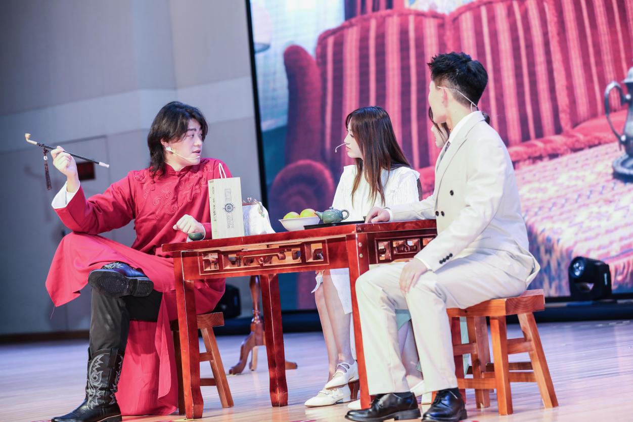 桃李化春泥,反哺育新芽: 创意肢体剧《一堂生动的实训课》则将课堂搬上舞台,通过艺术化的肢体语言,生动呈现了艺术设计学院践行“以项目驱动教学、用实践反哺成长”理念的丰硕成果,充分展现了天华学子在实践熔炉中将知识转化为能力与自信的成长过程。