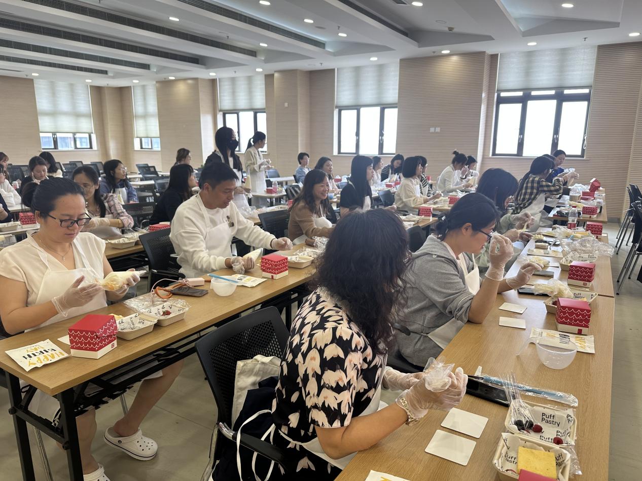 学校工会于5月9日下午在图书馆4楼报告厅举办了“果味飘香,甜蜜共享”为主题的美味水果蛋糕制作活动。教职工们齐聚一堂,在专业烘焙师指导下亲手制作创意水果蛋糕,活动现场香气四溢,欢声笑语不断。