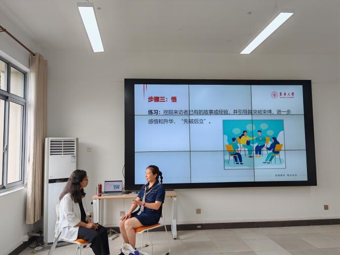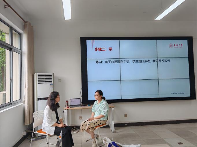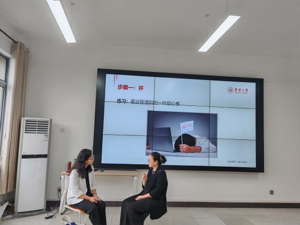 上午的培训由东华大学副教授、全国职业规划大赛金奖获得者张佳老师带来“生涯咨询的历程与范式”专题培训。在培训过程中,张老师创新性地将《孙子兵法》的“奇正相生”策略与王阳明的“知行合一”理念融入咨询实践,提出了更符合中国学生特点的“动态匹配”咨询法。以金树人教授的“开、示、悟、入”四步咨询法为核心,通过生动的案例演示和角色扮演,展示了如何帮助学生突破职业选择困境。参训教师纷纷表示,这种互动式教学让抽象的咨询理论变得直观可感。
