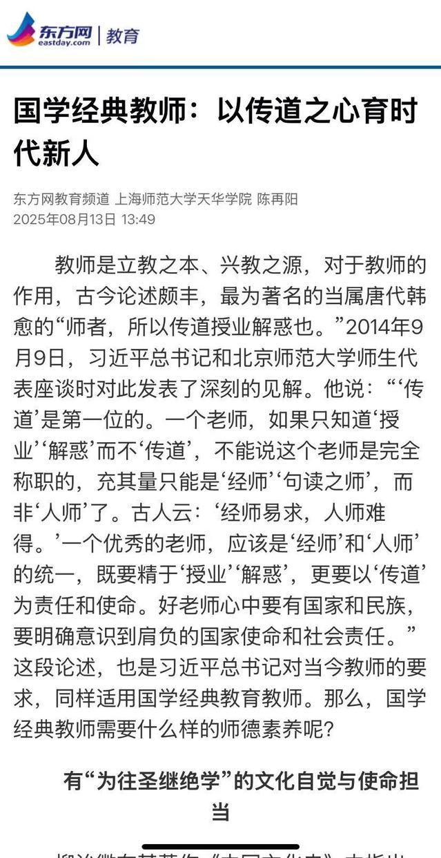 原文链接:国学经典教师:以传道之心育时代新人-东方网