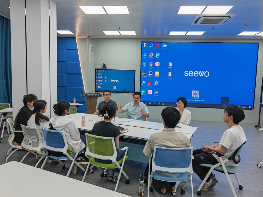 评委组与学生们课后座谈讨论课程质量。徐瑞哲 摄