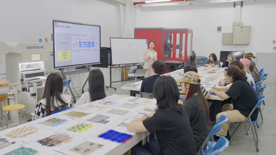 上海视觉艺术学院教师讲授《⾯料组织⼯艺设计》。