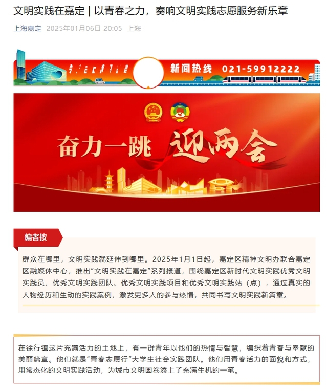 新闻链接:文明实践在嘉定 | 以青春之力,奏响文明实践志愿服务新乐章