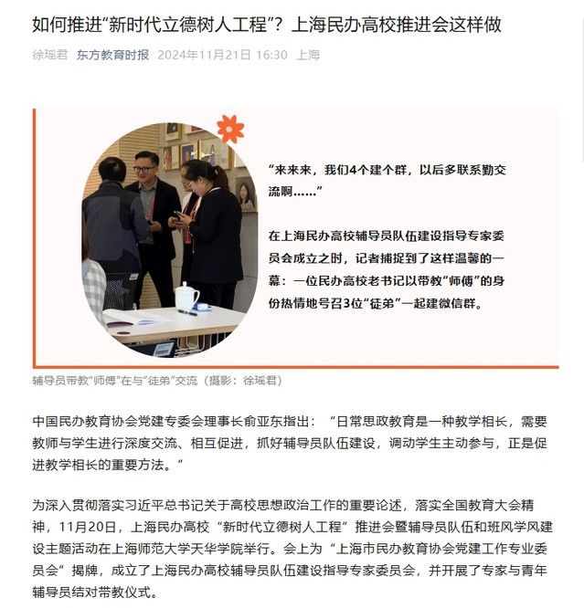 新闻链接:如何推进“新时代立德树人工程”?上海民办高校推进会这样做