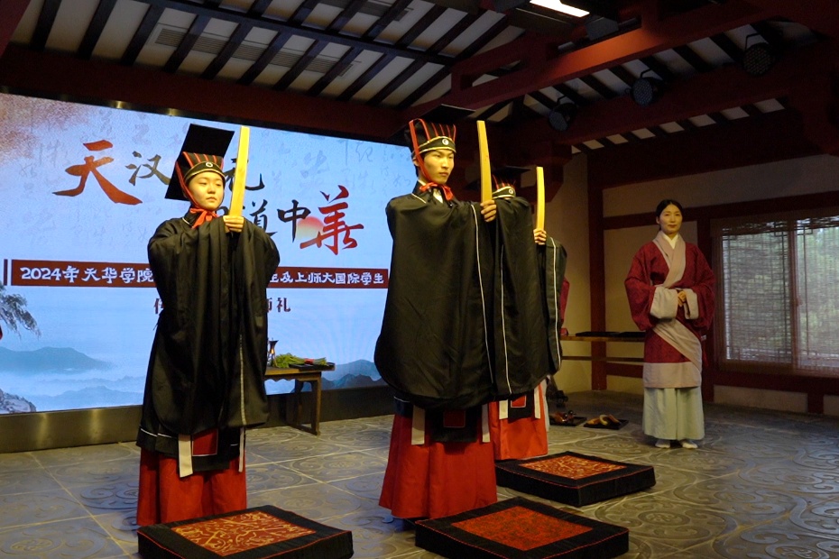 活动中,上海师范大学天华学院语言文化学院院长陈再阳向全体新生寄语,激励他们以更加坚定的步伐,踏上求知的征途。“这场庄重的入学礼,不仅让新生们在仪式中感受深刻。作为未来的教师,师范生们还能在日后踏上教职时,将这一文化传统传递给更多学生。”陈再阳表示,此次入学礼特别邀请中外学生一同参与,旨在促进文化交流,并期望通过留学生这一桥梁,进一步推广和弘扬中华优秀传统文化。