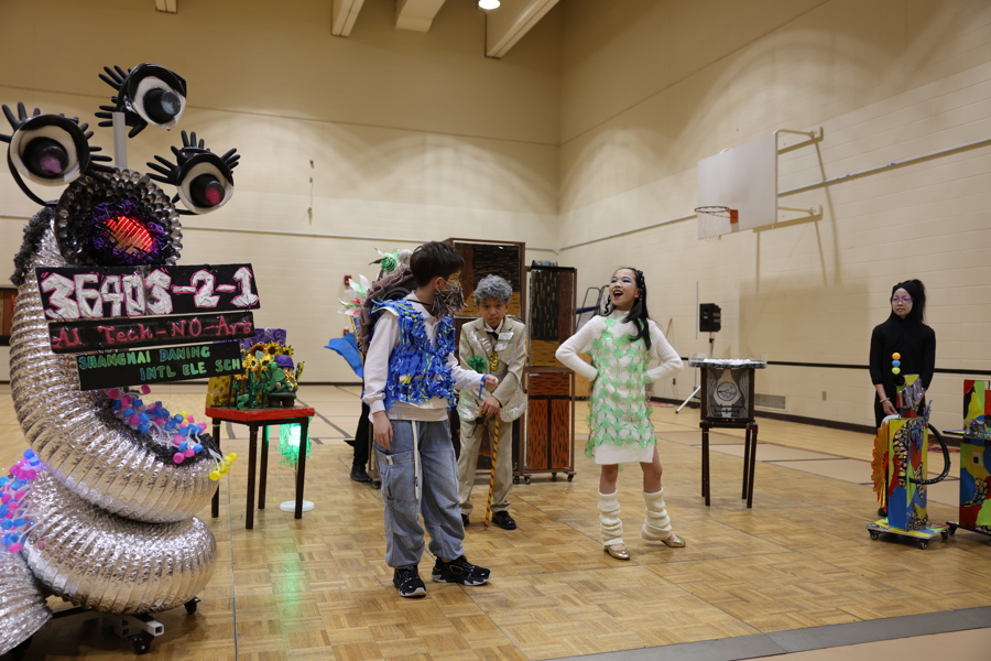 在头脑奥林匹克比赛中,一切没有标准答案,学生可以发挥天马行空的想象。在今年的长期题中,当电影和现实交织,当人工智能遇上装置,当表演打破时空界限……会发生什么?在“人工智能装置”题目比赛中,大宁国际小学在情节设计上,利用装置穿越,与梵高相遇,实现未来和过去的对话,共同探讨艺术的本质。“古典……滑稽反常的首演”题目中,要求创作意想不到的声效,上海外国语大学附属外国语学校参赛队员先后尝试封箱带的撕拉声、干燥剂的沙沙声等不同剧情效果,最后确定在塑料螺纹管里放上啤酒瓶盖,通过风琴收拉的形式发出意想不到的声效。在“汽车影院”题目中,向明中学制作的穿越机器道具,由一根推杆电机通过注射器和软管组成液压装置操作四扇门开关,以最低的成本实现最佳视觉效果。上海师范大学天华学院在准备过程中,遇到系统稳定性和实时数据处理的难题,在教练陈郑泱和李忠唐的指导下,分阶段测试和迭代优化,最终成功解决技术瓶颈,确保每个模块的功能稳定运行。