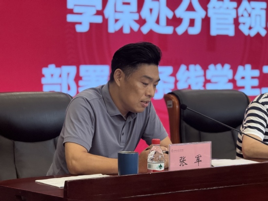 学保处副处长张军结合“07后”学生思维活跃、个性鲜明的特点,明确了武装与保卫的重点工作。他指出,要有针对性地加强安全教育,构建常态化管理机制,筑牢校园安全防线;建立“一人一档、精准施策”的重点学生帮扶机制,让学生感受到学校温暖;持续深化爱国荣校教育,将国防精神融入日常,增强学生的家国情怀和归属感。