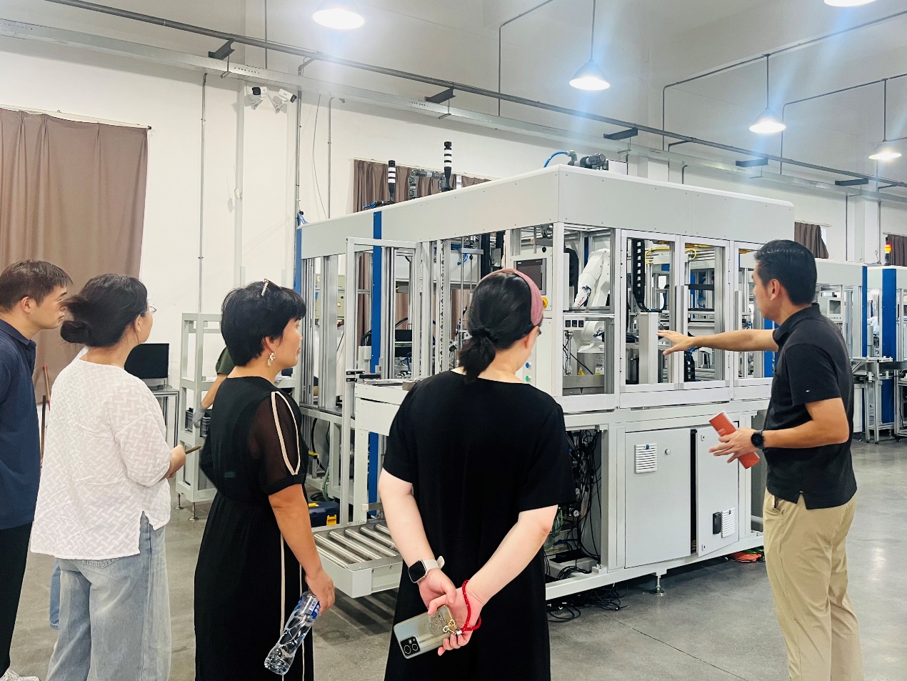 会后,参访团队实地考察了企业生产区域与实训场地。宋定超总经理结合墨西哥、欧洲子公司项目案例,详解自动化装备应用场景;吴银喜总经理助理重点介绍企业内部培训体系和支持服务。