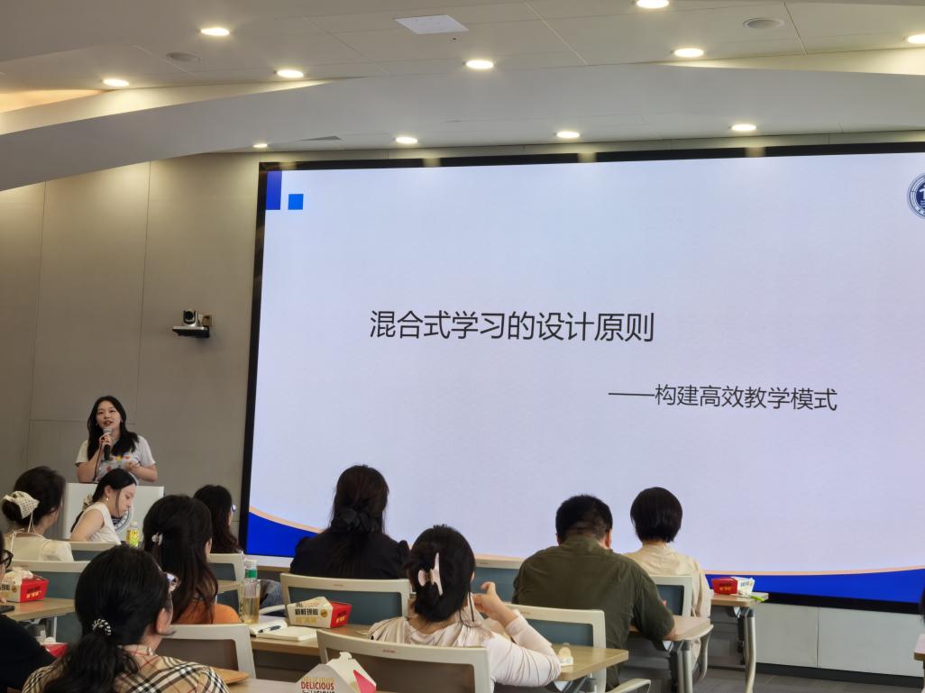 接下来,健康学院邓爽老师聚焦“混合式学习的设计原则”进行分享。介绍了什么混合式学习,混合式教学应该如何更有效的进行设计。以“需求分析—课程结构设计”两大核心原则为轴,深入剖析如何从“目标群体、学习目标、内容选择、资源利用”四个维度完成需求分析,再借加涅九大教学事件为框架,将线上/线下任务无缝嵌入“引起注意—促进迁移”的完整闭环。