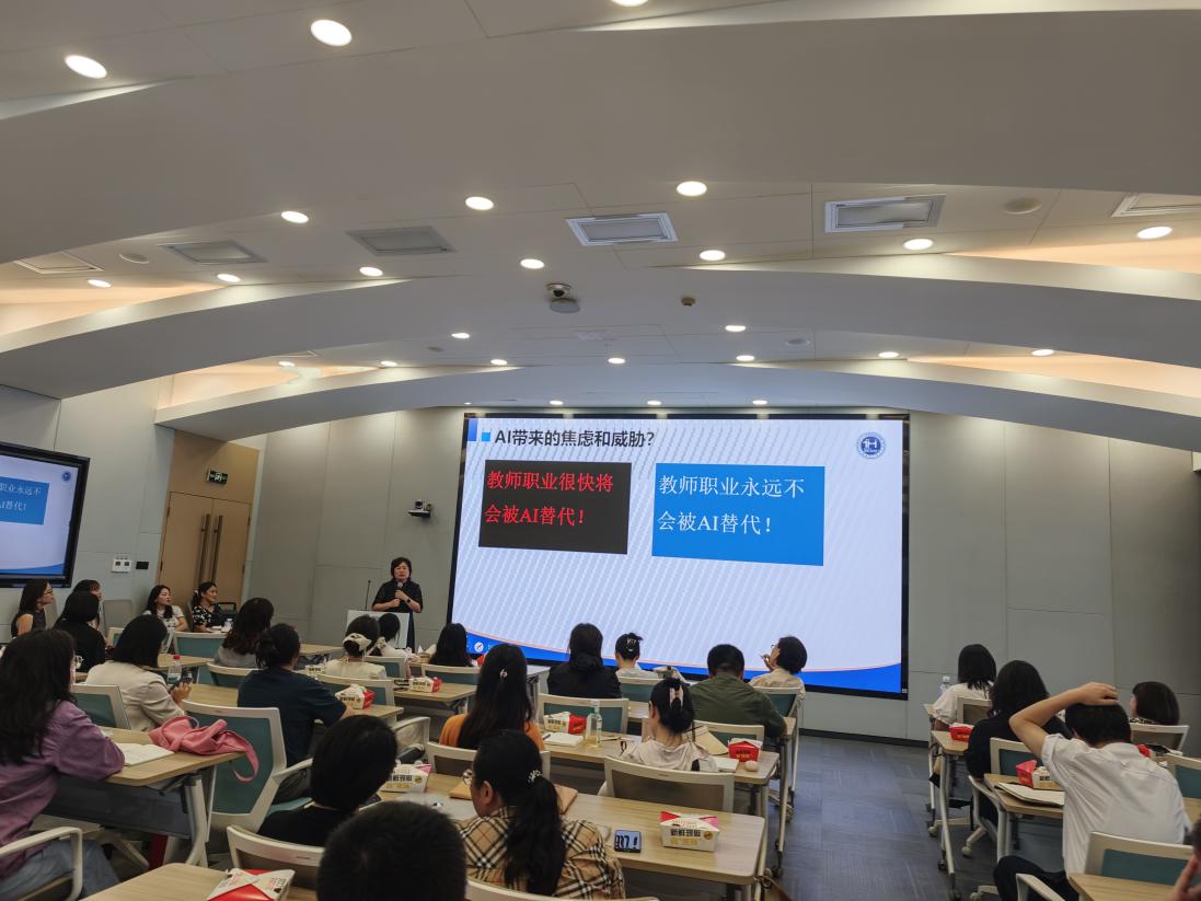 最后,由滕薇老师以“以学习者为中心,赋能自主成长”作结。滕薇老师分享了研学途中“颠覆预期的学习体验”,在芬兰,教师最常说的一句话是“How can I help you?”——教学不是表演,而是服务;不是灌输,而是点燃。滕薇老师引用芬兰研究团队(Anna Parpala等)长达十余年的循证研究结论,强调“教的立场与动机”才是教师不可替代的核心竞争力,并郑重寄语:“AI时代,教师职业永远不会被替代,但会被‘不会使用AI的教师’替代;我们要做的,是让技术为我所用,坚守‘人本主义’的底线。”