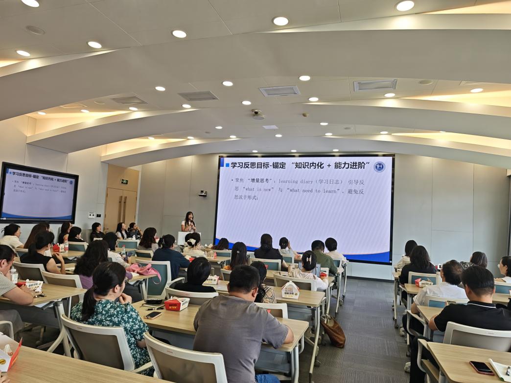 然后,健康学院张佳钰老师则将镜头对准“学习反思”。张佳钰老师提出“学习日志(Learning Diary)”引导学生进行“增量思考”——每天只回答两个问题:“What is new?”“What need to learn?”张佳钰分享如何借助“学习通”匿名讨论功能,降低学生课堂参与的心理门槛,实现从“权威者”到“引导者”的角色转型。她分享道:“匿名讨论让学生更敢于表达真实想法,课堂参与度显著提升,教师也能更精准地捕捉学生的学习需求。”