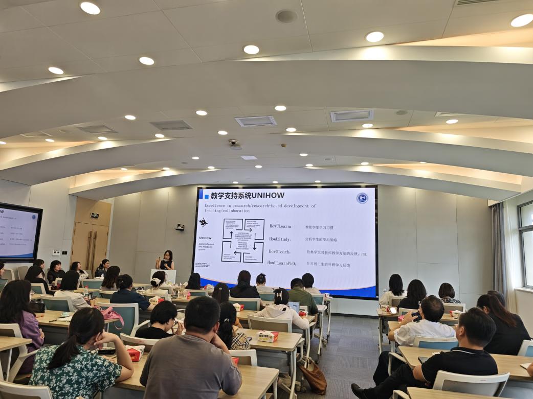 9月17日中午,第64期博士沙龙在明华楼远程教学中心举行。本次活动由教师工作部副部长李艳艳主持,特别邀请暑期“芬兰赫尔辛基大学混合教学课程设计高级研修”团队分享研修成果。研修团队由教育学院戴沉雁,语言文化学院方旭雁,健康学院邓爽、张佳钰老师构成。四位教师通过“上海市民办高校强师工程”混合式教学专项培训,以“优秀学员”身份结业,并在课程设计评审中荣获“优秀等级”,成功入选由上海市民办高校“强师工程”师资培养项目全额资助的“芬兰赫尔辛基混合教学课程设计高级研修”项目。本次研修由校长助理、人事处处长、教师工作部部长滕薇带队,8月17—28日,研修团队在赫尔辛基大学完成为期12天的沉浸式工作坊学习。