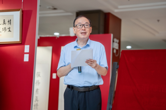 活动由校级助理、党办主任、宣传部长齐砚奎主持。他回顾了今年五月上海市教卫机关老干部书画组来校开展书画艺术交流活动的情景。当时,在市教委原主任张伟江,原副主任瞿钧、王奇等带领下,书画组一行30余人莅临我校,围绕办学理念、部门工作格言等主题创作了37幅作品。此次书画展展出这些墨宝,为校园增添了浓厚的文化氛围。