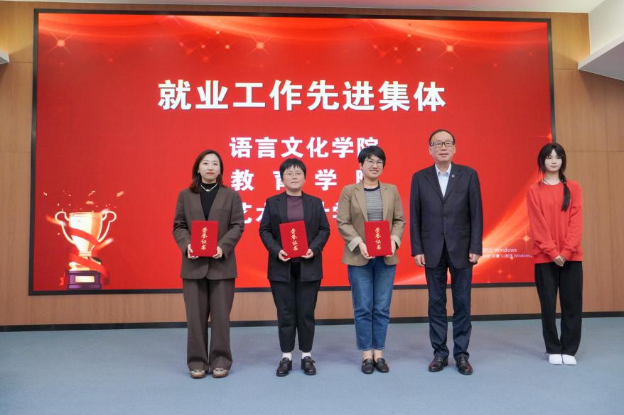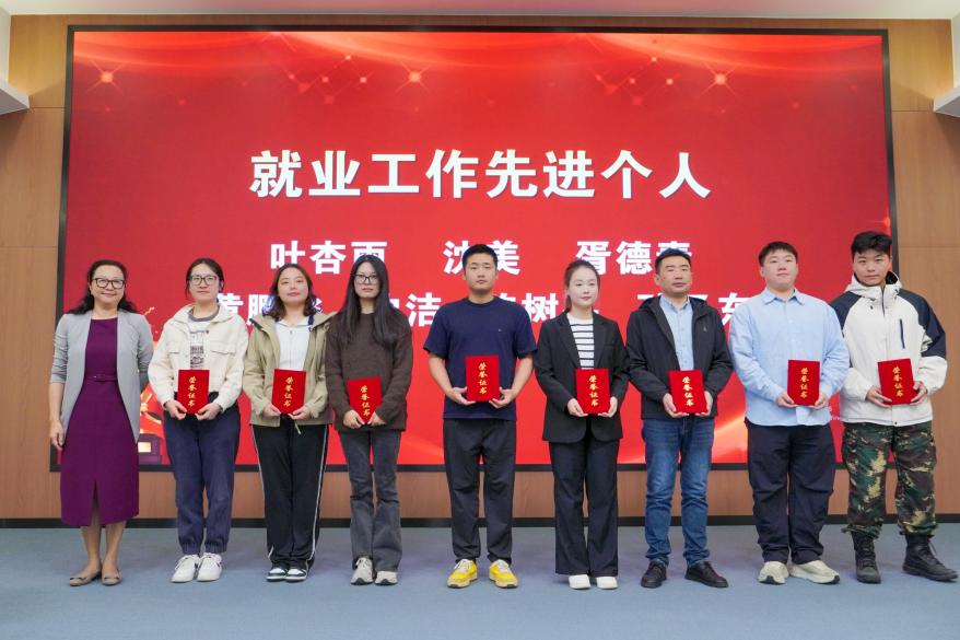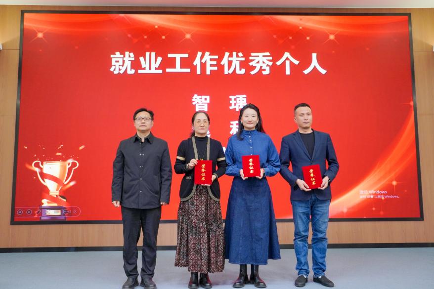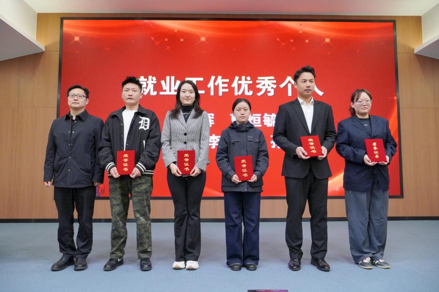 随后,校领导共同为在招生与就业工作中表现突出的集体和个人进行表彰,为获奖代表颁奖并合影留念。
