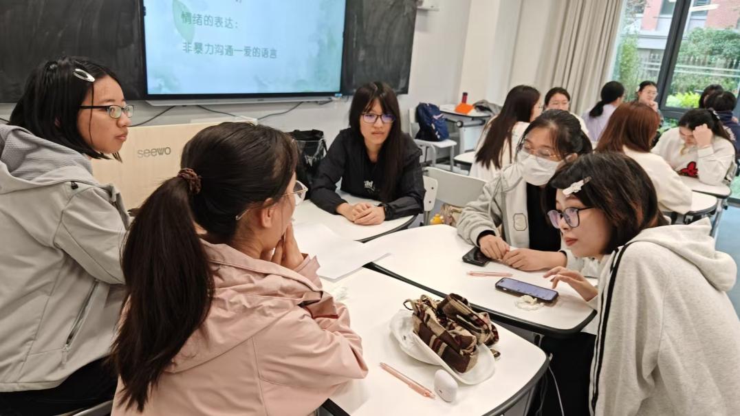 《我的阿勒泰》片段对比,女主角从“平静—羞涩—震惊—暴怒”的表情变化被金老师逐帧拆解。“觉察,是改变的第一步。”她现场示范“情绪温度计”:0-10分打分,先定位,再降温。让大家现场讨论自己以后在面对负面情绪时,会采用什么策略,并采用投屏的形式分享给同学们。