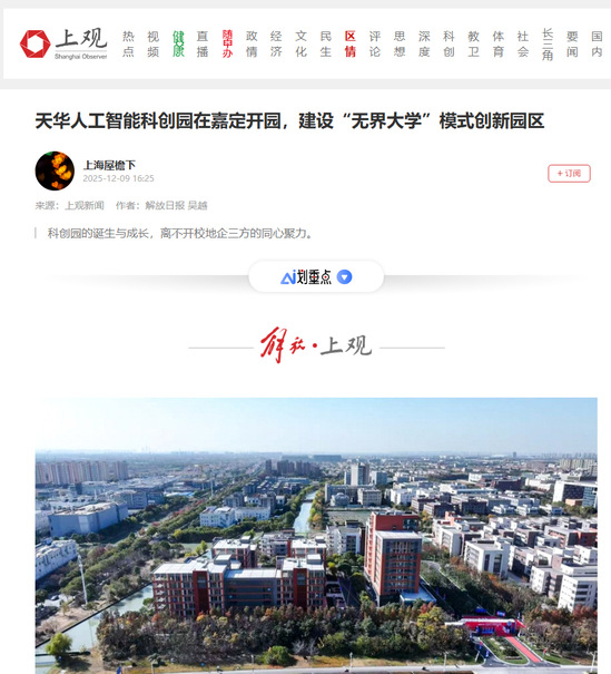 解放日报 | 天华人工智能科创园在嘉定开园,建设“无界大学”模式创新园区